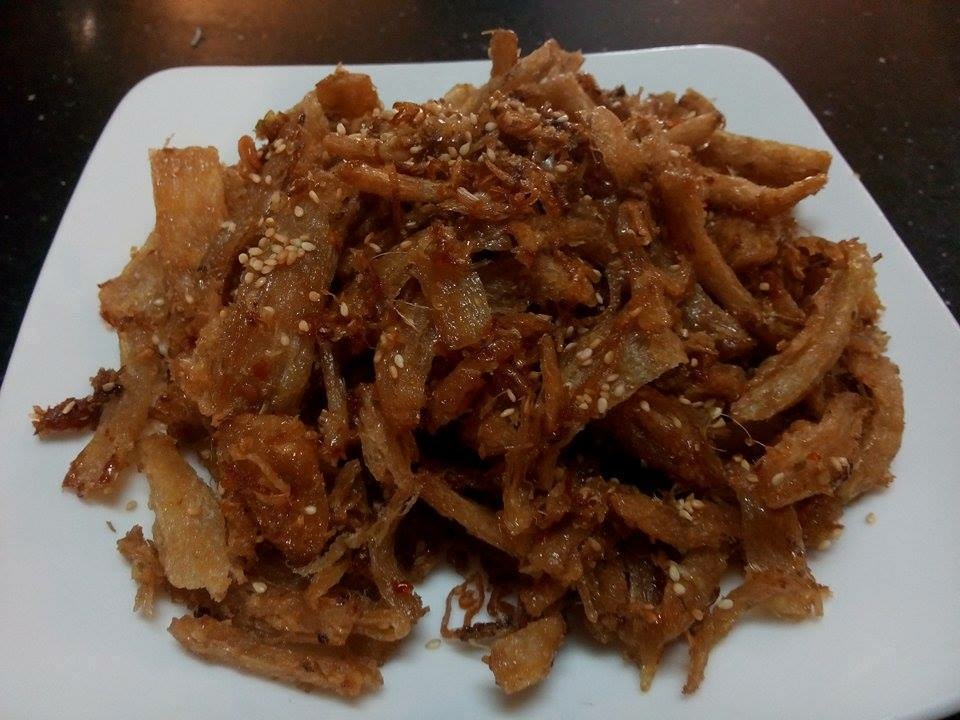 2-Đem sườn chiên vàng giòn. Vớt sừơn ra miếng paper towels cho thấm bớt dầu.